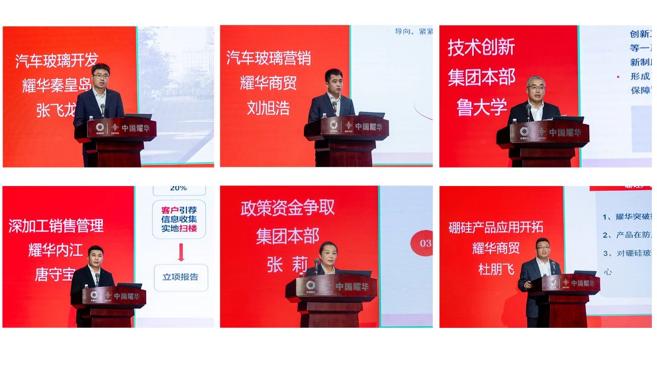 会上,汽车玻璃开发、汽车玻璃营销、技术创新、加工玻璃销售管理、政策资金争取和硼硅产品应用开拓团队6个单位现场交流发言。